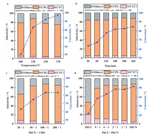 $ S(CPL) = \frac{{n\left( {CPL} \right)}}{{{n_0}\left( {CHO} \right) - n\left( {CHO} \right)}} \times 100\% $ | (2) |